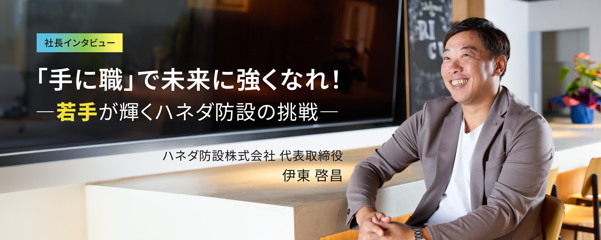 Q3若手の教育について教えてください 一生ものの力を7ヶ月の座学研修に込めた想い もう一つ、私たちが力を入れているのが「教育」です。ハネダ防設では、入社からおおよそ7ヶ月間、座学研修を行います。図面作成や要件検討など、一つのプロジェクトを座学ベースで完結させるんです。 なぜ、ここまで時間をかけるのか。それは「わからないことが、わからない」状態をなくすためです。基礎をきちんと身につけることで、2年目からの成長スピードはまったく違ってくる。だから、じっくり学ぶ時間を大切にしています。 私たちが採用と教育に力を注ぐ最大の理由は「手に職をつけてもらいたい」という想いがあるからです。ここでいう「手に職」とは、資格だけを指す言葉ではありません。専門的な知識、経験、考え方、つまり、一生ものの力を身につけることを指します。 私自身も高校を出てこの業界に入り、5年後には独立しました。そして今がある。だからこそ、「手に職を持つこと」がどれほど自分を強くしてくれるか、身をもって知っています。その価値を次の世代にも伝えたいのです。